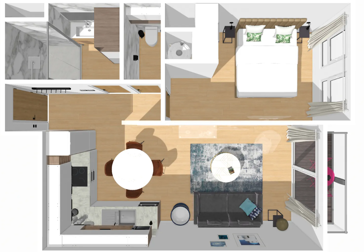 Tastefully furnished and equipped with everything you need, this newly built apartment offers a warm and welcoming environment. Natural light floods in through the large bay window, enhancing every corner of this urban cocoon.