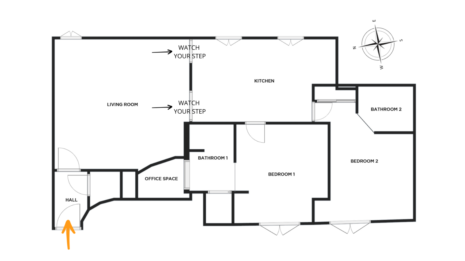 A second, separate toilet is located in the entrance hall, before the living room.