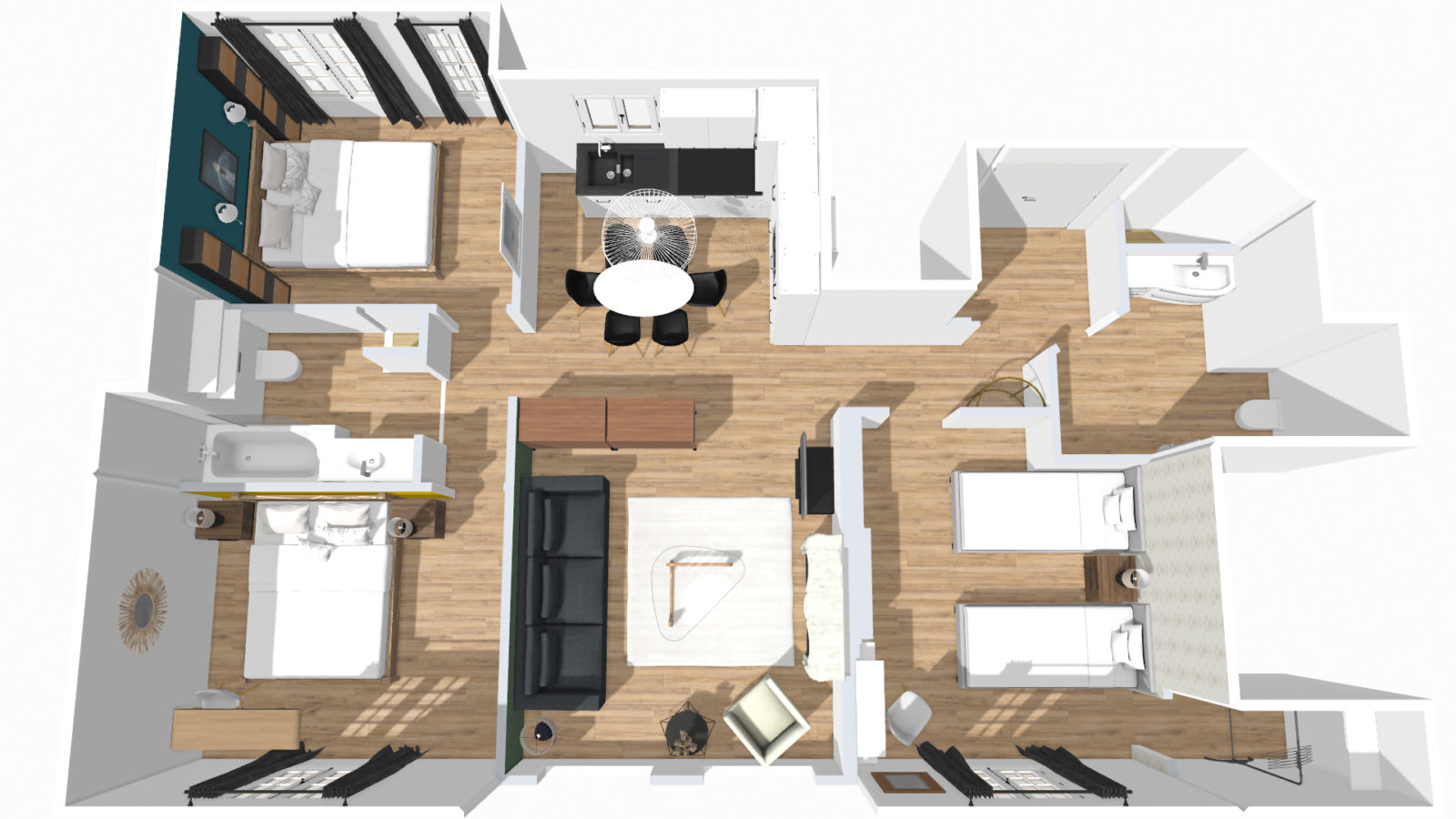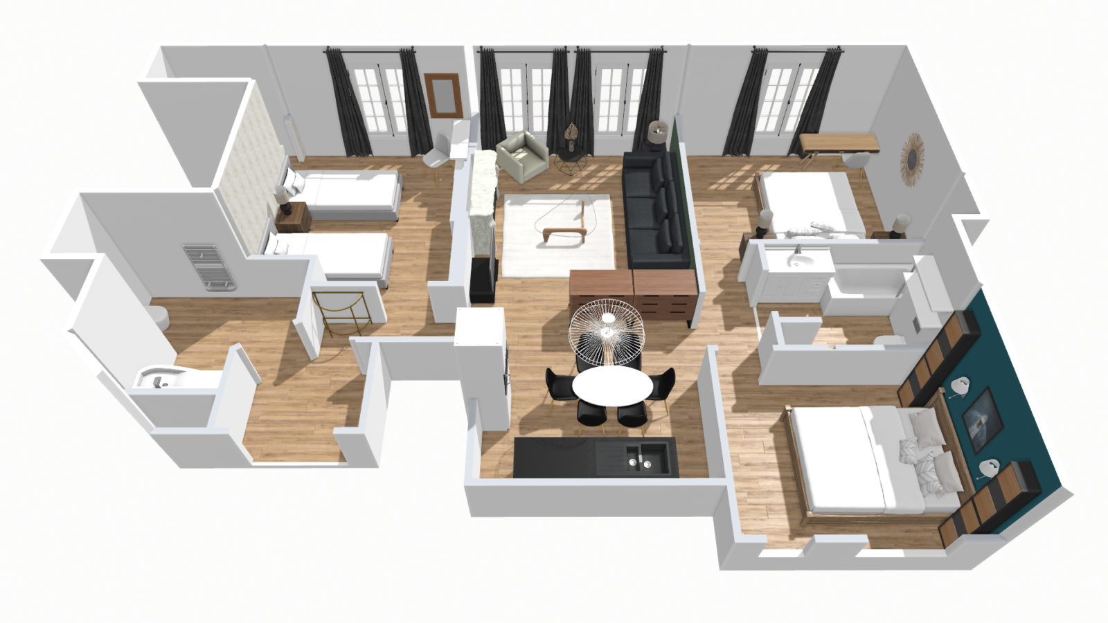 - 3 bedrooms