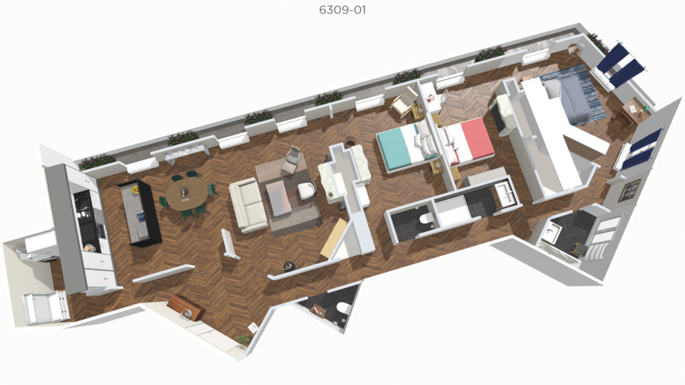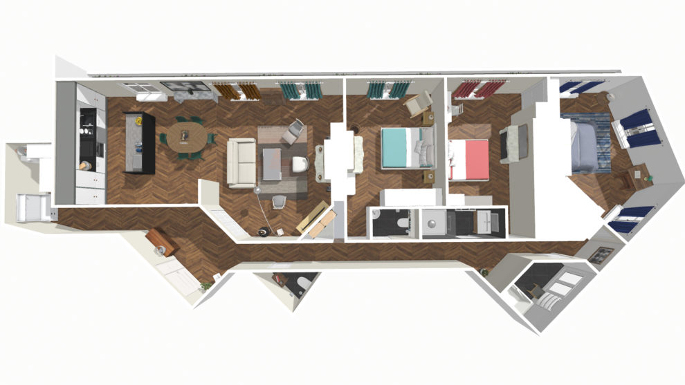 The other two bedrooms have queen-size 160x200cm beds and 140x190cm beds respectively. They also feature plenty of storage space and a view over the rooftops of Paris.