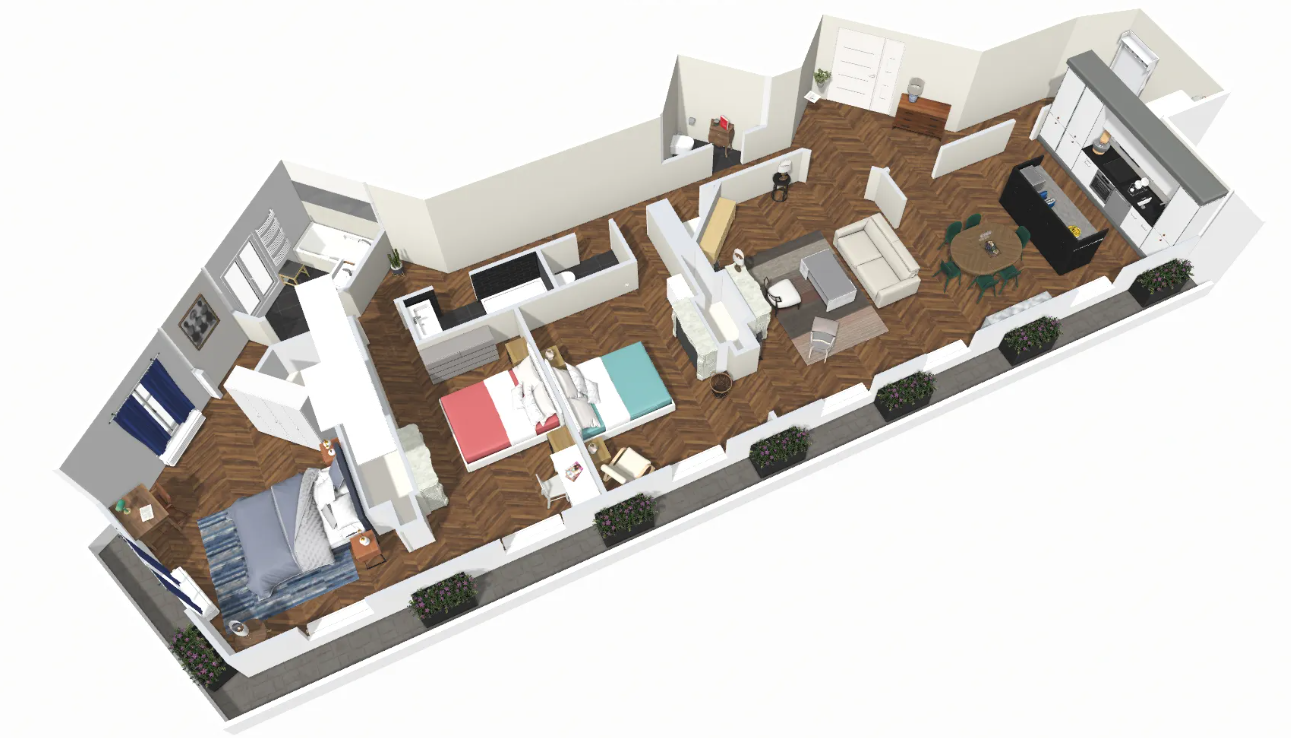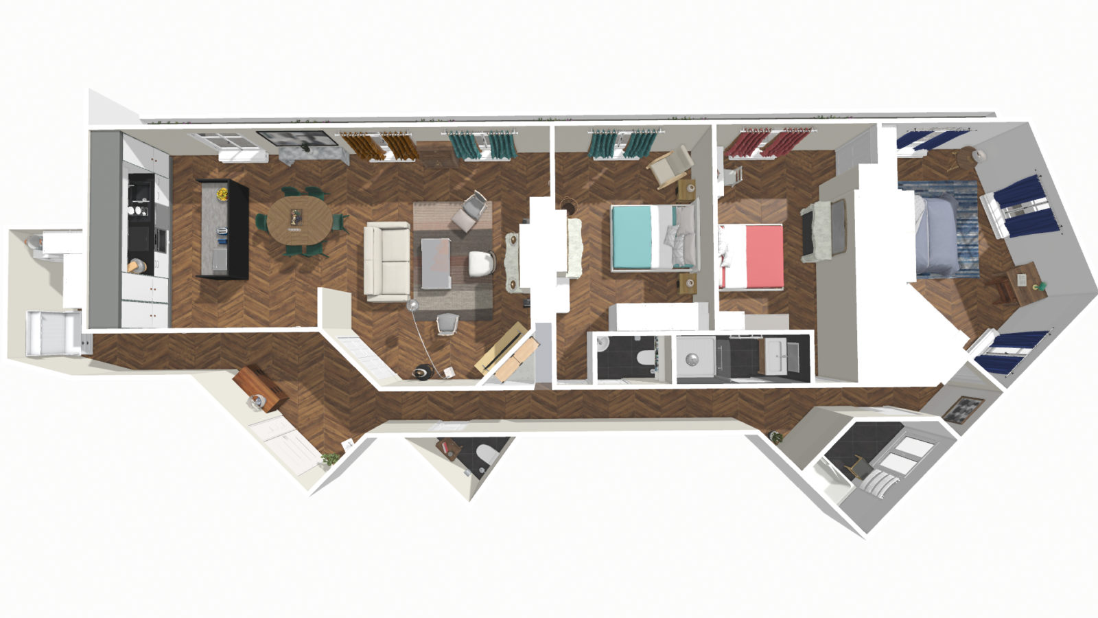 The other two bedrooms have queen-size 160x200cm beds and 140x190cm beds respectively. They also feature plenty of storage space and a view over the rooftops of Paris.